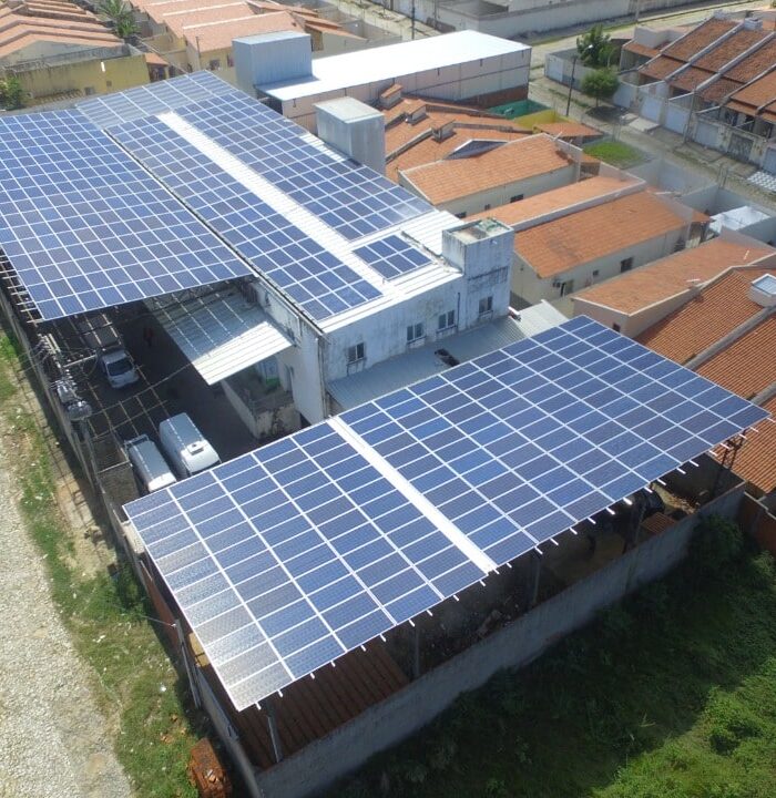 148 placas fotovoltaicas com potencia total 50 kWp em telhado metálico